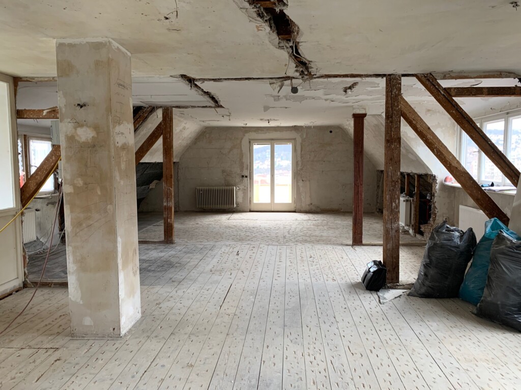 Dachgeschossausbau - zuerst Entkernung -Komplettsanierung durch Firma Sarah Maier