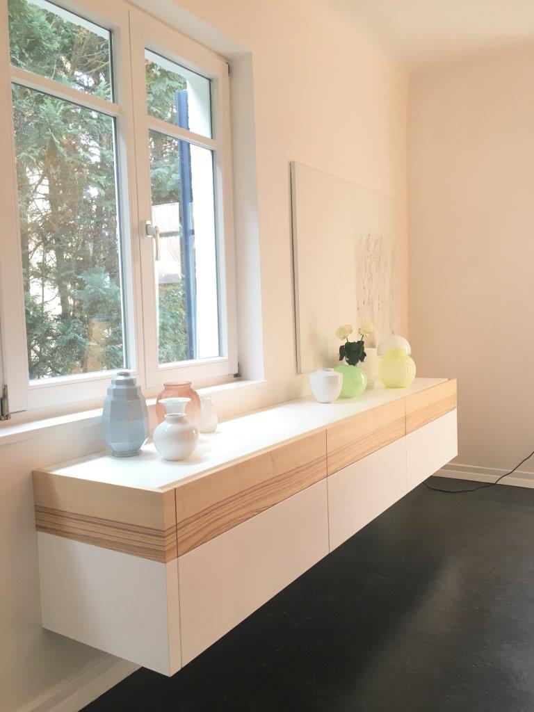Detail eines langen Sideboards unter Dachschräge