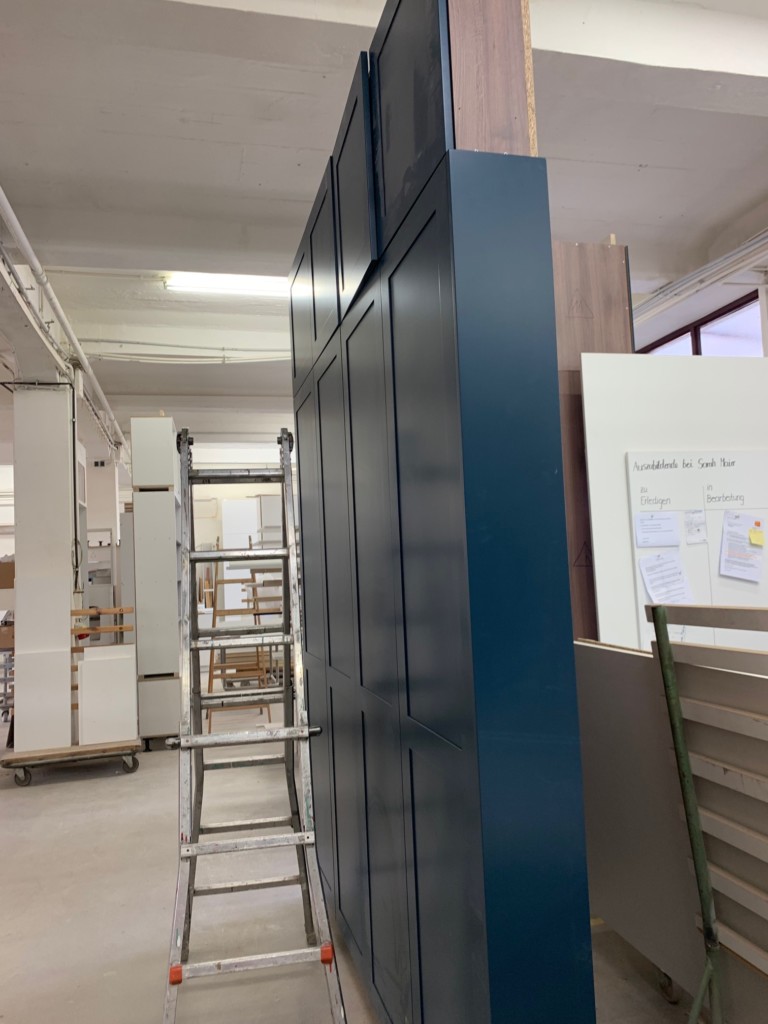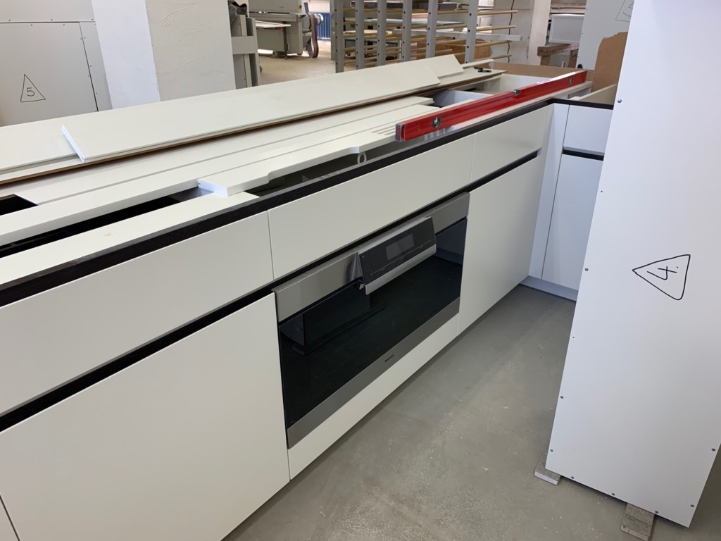 Alle Möbel werden bei uns komplett aufgebaut, bevor Sie zum Kundnen kommen. Das ist uns wichtig, jedes Detail kann damit überproft werden und unsere Spaltmaße sind gnadenlos gut.