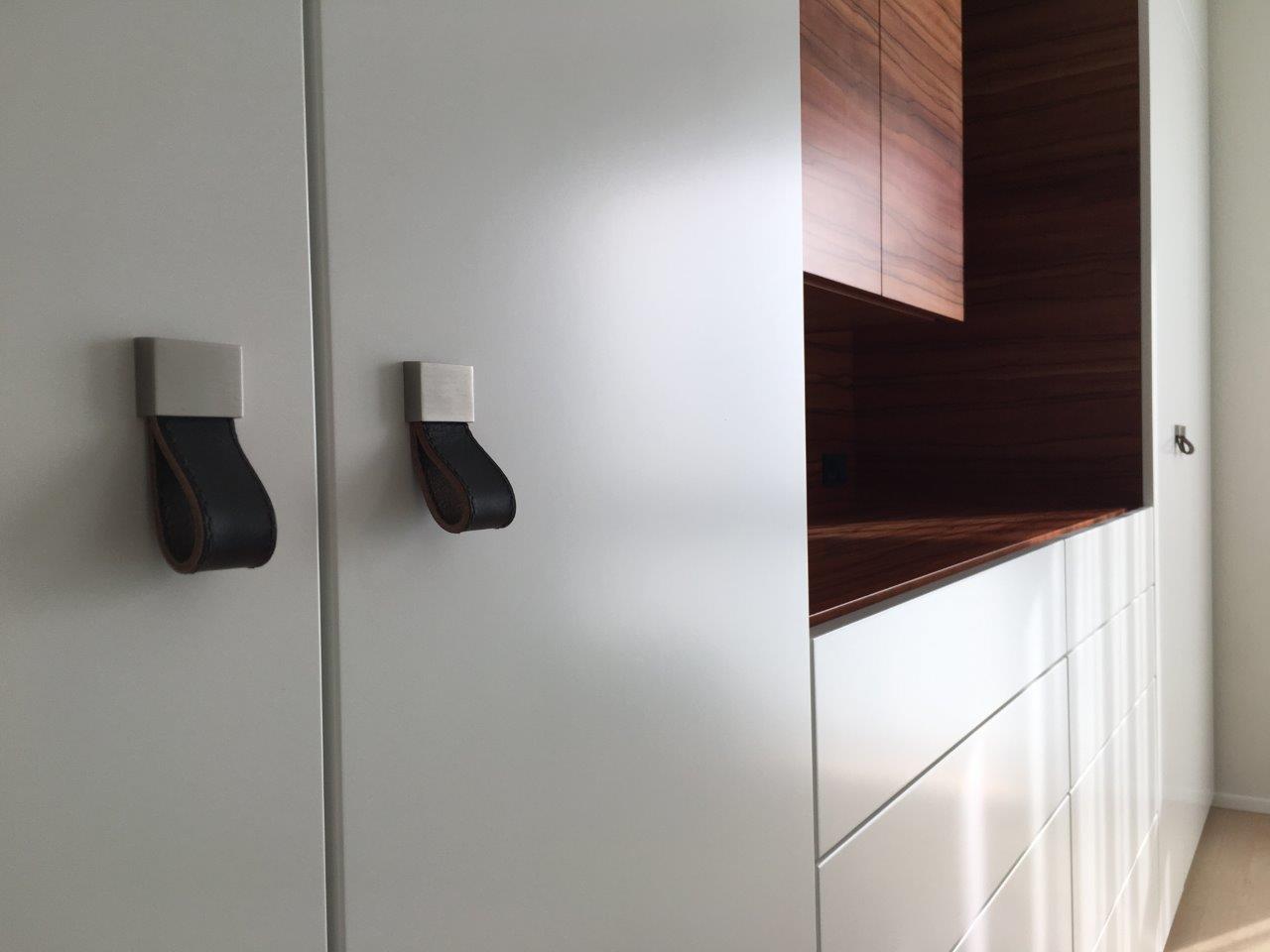 Türgriffe aus Leder an Schleiflackschranktüren