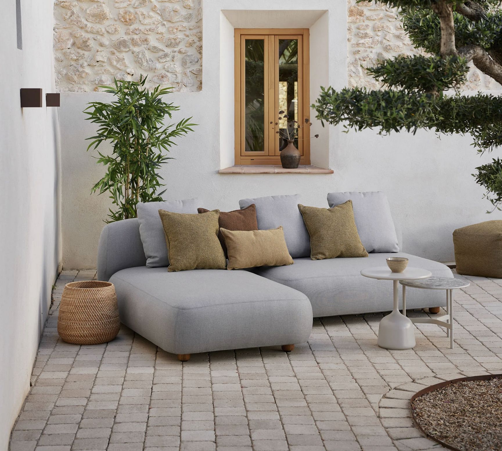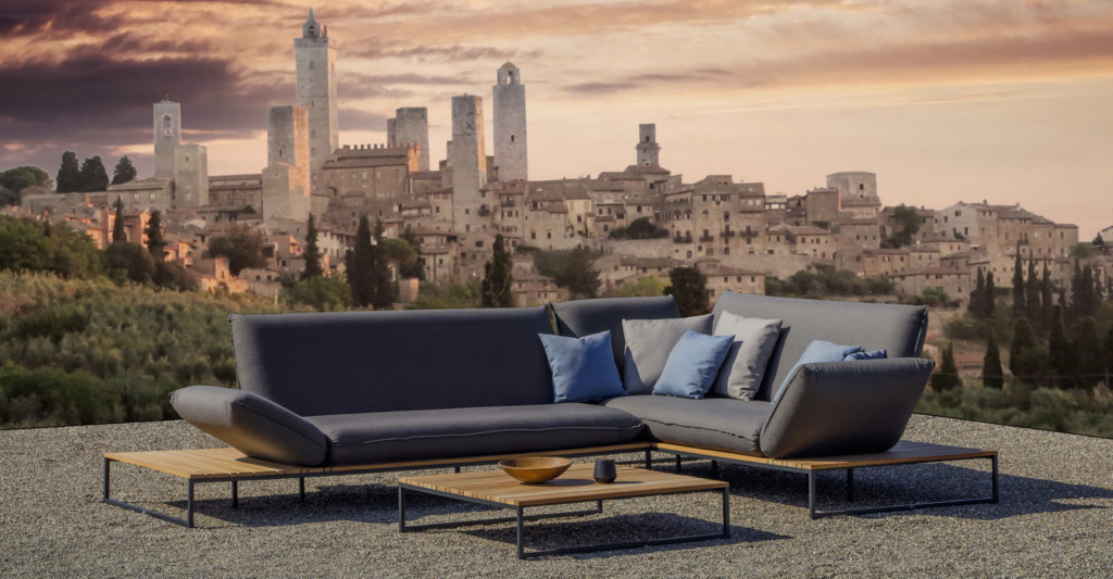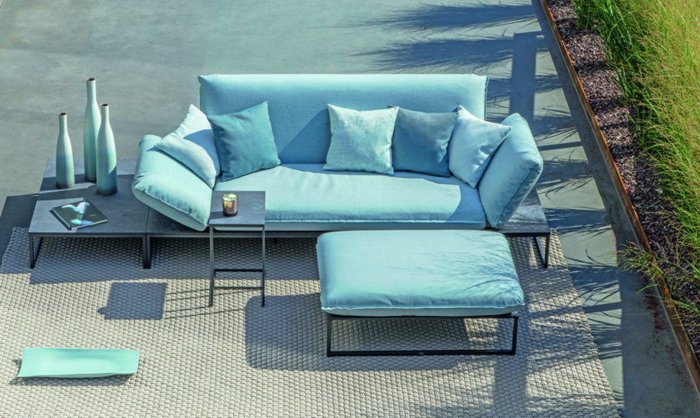 Sofas für Aussen sind eine feine Sache. Die Sofakombination Moments von Caneline ist brandaktuell auf der Kölner Möbelmesse präsentiert worden.