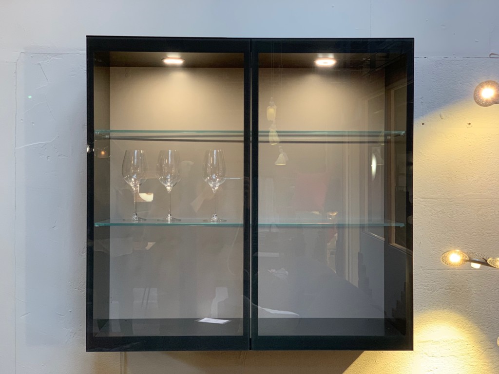 Farbe Graphit mit Glasfach, Innenbeleuchtung LED, Trafo 12V und Funksteckdose