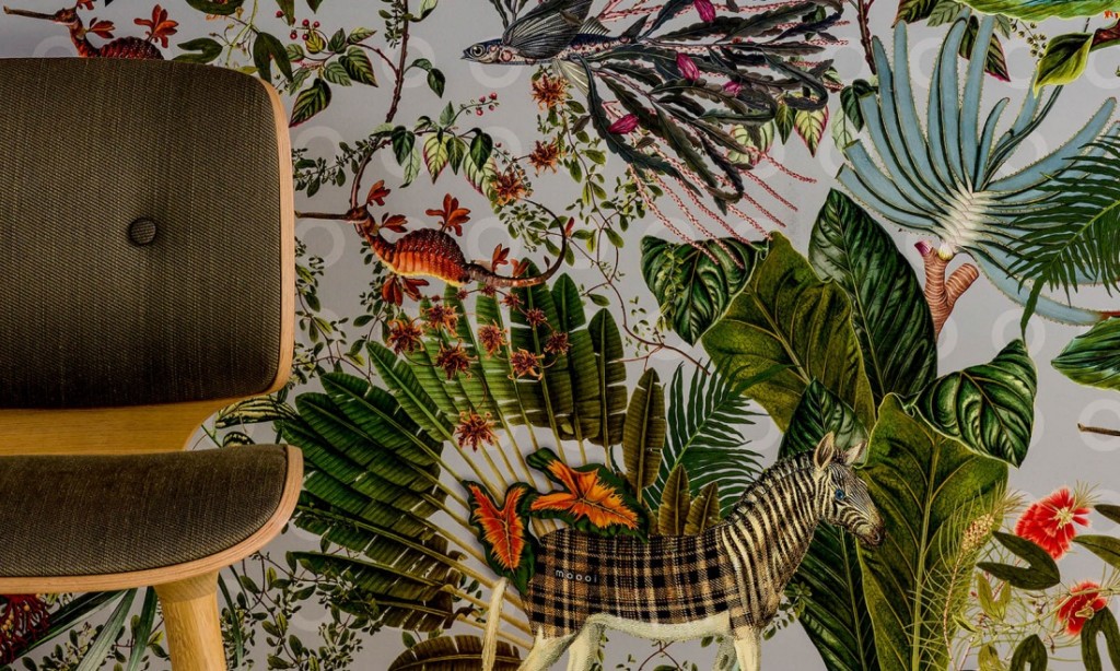 Fell und Farbe der fabelhaft anmutenden Wesen bilden dabei die Vorlage für Tapeten, die mal vielschichtig aus Metal, Textil und Flocken, mal erhaben und akustisch wirksam, mal bunt und üppig, aber jedes Mal wunderbar und neu daherkommen.
