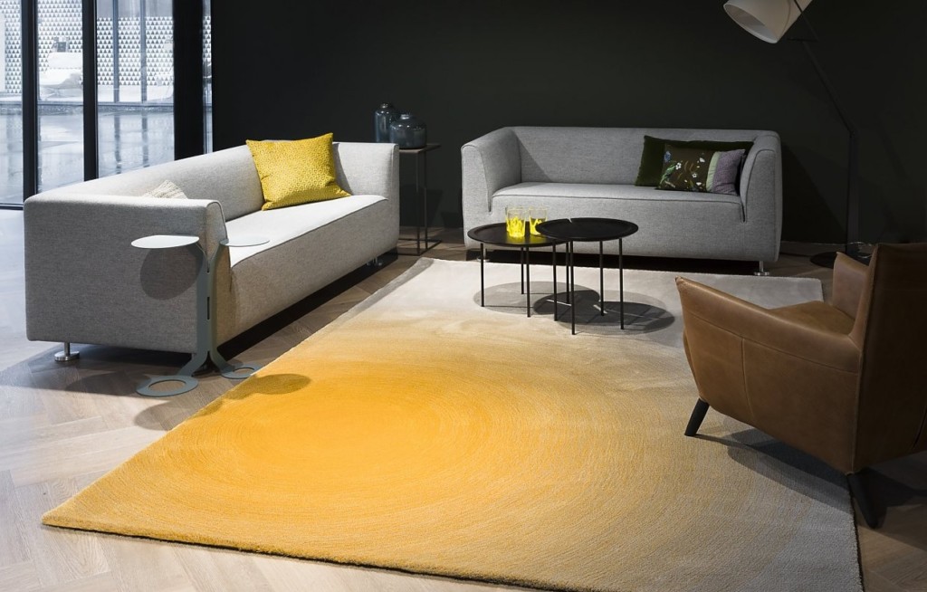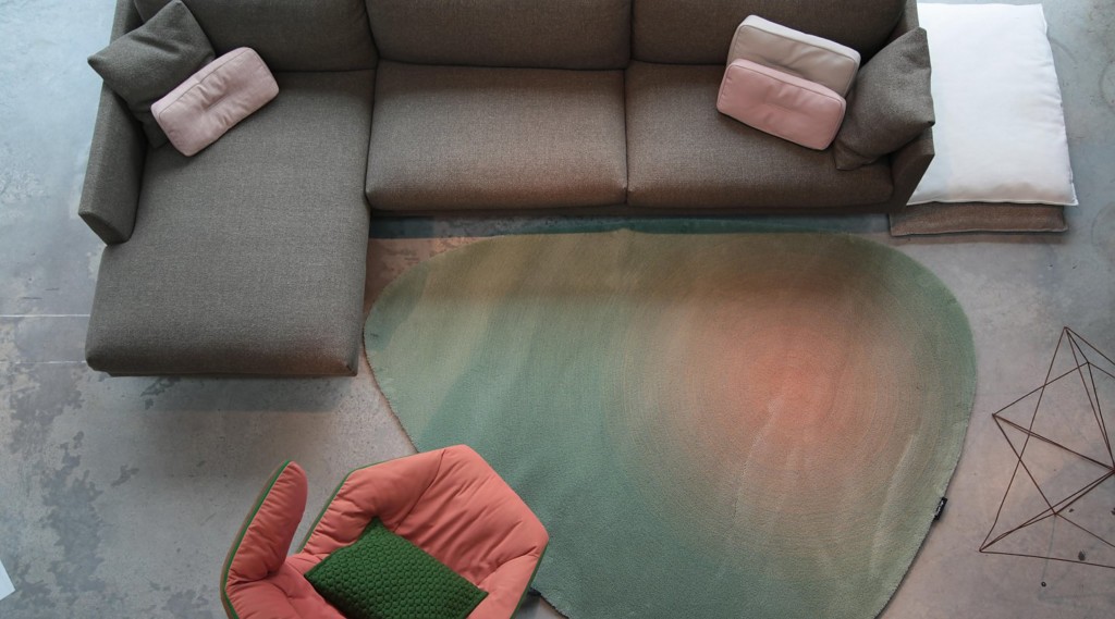 Die holländische Firma CS RUGS macht irreschöne Teppiche mit freiwählbarem Farbverlauf: Sie suchen sich aus jeder Menge Farben vier heraus, wählen eine Form (zB auch eine Kieselsteinform: ein ungleichmäßig dreieckig abgerundeter Teppich), und heraus kommt ein individueller Teppich mit Wow Effekt.
