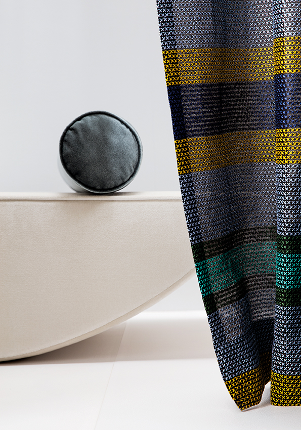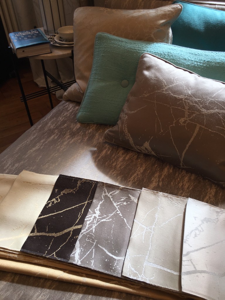 Nichts geht über Textil, das wirklich gut gemacht ist. Manche Stoffe sehen bezaubernd aus, wie zum Beispiel der Stoff Array von Sahco, ein in Handarbeit aufgebrachter Kreuzstich verleiht ihm eine nie dagewesene Textur. Nichts für jederman – ich bin gespannt, wo ich diesen tollen Stoff überall einsetzen.